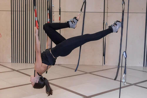 Несколько слов хотелось бы рассказать о специфике занятий. Направление фитнеса альфа-гравити создано на основе элементов фитнеса, пилатеса, йоги. Здесь предусмотрены силовые нагрузки и растяжки. Основной акцент делается на воздействие силы гравитации и собственного веса тела. Тренировки проводятся в горизонтальном положении на подвесных тренажерах.
